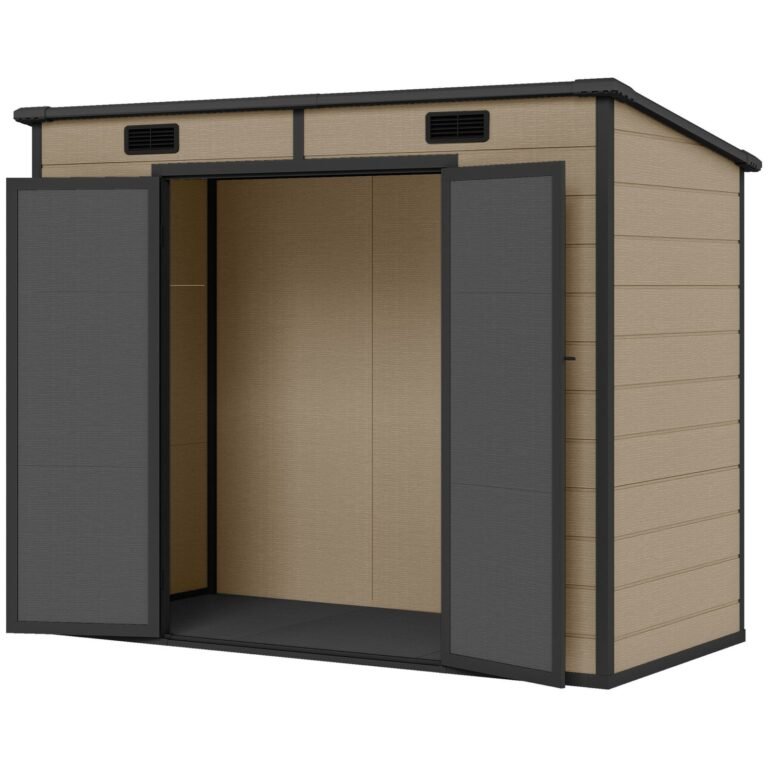 Outsunny 8′ x 4′ Outdoor Storage Shed Light Brown Resin