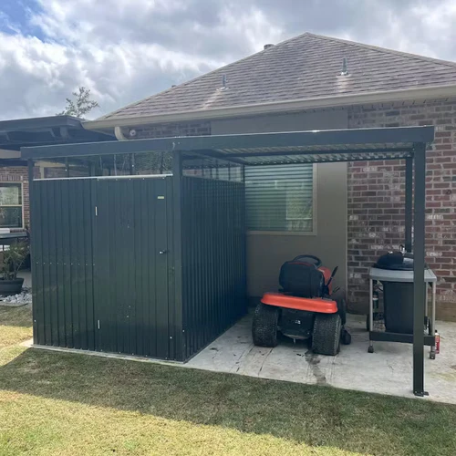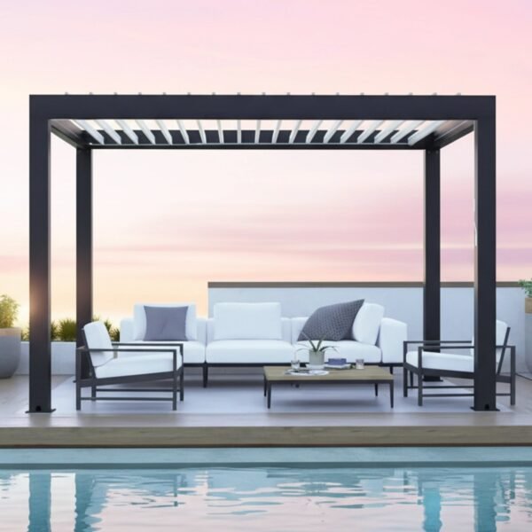 | Roof Material | Grey Aluminum Louvered Panels (2 panels) |