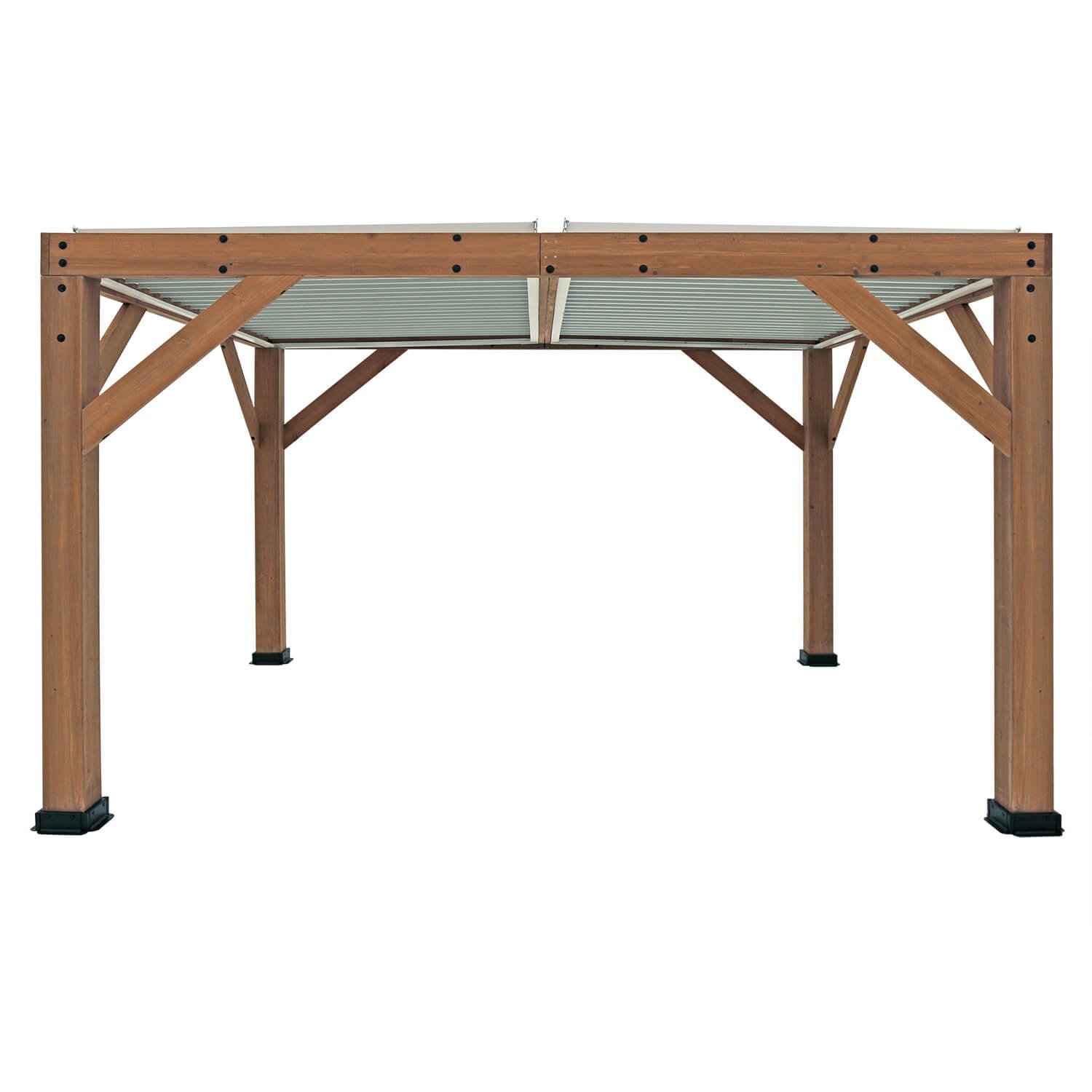 The Yardistry Structures Louvered Roof Pergola is a durable outdoor living structure designed to enhance your backyard space. Constructed from high-quality cedar wood, this pergola features an innovative louvered roof sy